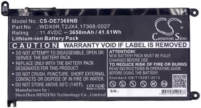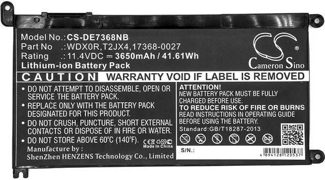 Battery for DELL 14(i5-7200U/4G/128G 500G) 7000 14 (i5-7200U/4GB/128GB 50 Compatible with the following devices 14(i5-7200U/4G/128G 500G), 7000 14 (i5-7200U/4GB/128GB 50, 7000(INS14-7460-R1605G), Dell INS 13MF PRO-D1708TS, INS 13MF PRO-D1508TS, Ins 14-5488-D1625S, Ins 14-5493-D1725S, Ins 15-5570-D2305S, Ins 15-7570-D6645S, Ins 15-7572-D1745S, Ins 15-7580-D2825S, INS15-5567-D1525A, Inspiron 13 5368 2-in-1, Inspiron 13 7368, Inspiron 13-5379-9573, Inspiron 13MF PRO-D1508TS, Inspiron 13MF-2505T, Inspiron 13MF-D1208TA, Inspiron 13MF-D2205TA, Inspiron 13MF-D2605TA, Inspiron 14 3493-4KWCF, Inspiron 14 5000 5482 2-in-1, Inspiron 14 5485, Inspiron 14 5491 2-in-1, Inspiron 14 5682, Inspiron 14-3480-D1625B, Inspiron 14-3480-D1625S, Inspiron 14-3480-D1725S, Inspiron 14-3480-R1725S, Inspiron 14-3482-D1105B, Inspiron 14-3482-D1105S, Inspiron 14-3482-D1205B, Inspiron 14-3482-D1205S, Inspiron 14-5480-D1605R, Inspiron 14-5480-D1605S, Inspiron 14-5480-D1625R, Inspiron 14-5480-D1625S, Inspiron 14-5480-D1725S, Inspiron 14-5480-D1825R, Inspiron 14-5485-D1305S, Inspiron 14-5488-D1505G, Inspiron 14-5488-D1505P, Inspiron 14-5488-D1505S, Inspiron 14-5488-D1725G, Inspiron 14-5488-D1725S, Inspiron 14-5488-D2625G, Inspiron 14-5488-D2625S, Inspiron 14-5488-D2725P, Inspiron 14-5488-D2725S, Inspiron 14-5493-D1305S, Inspiron 14-5493-D1405S, Inspiron 14-5493-D1525S, Inspiron 14-5493-D1528S, Inspiron 14-5493-D1605S, Inspiron 14-5493-D1625S, Inspiron 14-7460-D1525G, Inspiron 14-7460-D1525S, Inspiron 14-7460-D1605S, Inspiron 14-7460-D1625S, Inspiron 14-7460-D1725G, Inspiron 14-7460-D1725S, Inspiron 14-7472-D1525S, Inspiron 14-7472-D1601G, Inspiron 14-7472-D1605G, Inspiron 14-7472-D1605P, Inspiron 14-7472-D1605S, Inspiron 14-7472-D1621G, Inspiron 14-7472-D1621S, Inspiron 14-7472-D1625P, Inspiron 14-7472-D1725S, Inspiron 14-7472-D2625S, Inspiron 14-7472-D3501P, Inspiron 14-7472-D3501S, Inspiron 14-7472-D3505P, Inspiron 14-7472-D3505S, Inspiron 14-7472-D3521P, Inspiron 14-7472-D3521S, Inspiron 14-7472-D3525S, Inspiron 14-7472-D3721, Inspiron 14-7472-D3725G, Inspiron 14-7472-D3725P, Inspiron 14MF Pro-D1505TS, Inspiron 14MF Pro-D1525TS, Inspiron 14MF Pro-D1725TS, Inspiron 15 3583, Inspiron 15 3585, Inspiron 15 5580, Inspiron 15 5593, Inspiron 15 7579 2-in-1, Inspiron 15 7586, Inspiron 15-3582-D1205B, Inspiron 15-3582-D1205S, Inspiron 15-3583-D1525B, Inspiron 15-3583-D1525S, Inspiron 15-3583-D1725S, Inspiron 15-3585-D1505S, Inspiron 15-5567-D1525R, Inspiron 15-5567-D1725A, Inspiron 15-5567-D1745A, Inspiron 15-5567-D1745L, Inspiron 15-5570-D1525S, Inspiron 15-5570-D1525W, Inspiron 15-5570-D1545W, Inspiron 15-5570-D1645S, Inspiron 15-5570-D2545S, Inspiron 15-5570-D2645S, Inspiron 15-5575-D1305S, Inspiron 15-5575-D1505S, Inspiron 15-5575-D1545S, Inspiron 15-5580-D1525L, Inspiron 15-5580-D2525S, Inspiron 15-5580-D2625L, Inspiron 15-5580-D2625S, Inspiron 15-5580-D3525S, Inspiron 15-5580-D3725S, Inspiron 15-5580-D4625S, Inspiron 15-5580-D5625S, Inspiron 15-5585-D1305S, Inspiron 15-5593-D1525L, Inspiron 15-5593-D1525S, Inspiron 15-5593-D1528S, Inspiron 15-5593-D1605S, Inspiron 15-5593-D1625S, Inspiron 15-5593-D1745S, Inspiron 15-7560-D1505S, Inspiron 15-7560-D1525S, Inspiron 15-7560-D1545G, Inspiron 15-7560-D1545S, Inspiron 15-7560-D1645G, Inspiron 15-7560-D1725S, Inspiron 15-7560-D1745G, Inspiron 15-7570-D1641S, Inspiron 15-7570-D1645S, Inspiron 15-7570-D1741S, Inspiron 15-7570-D1745P, Inspiron 15-7570-D2641S, Inspiron 15-7570-D2645S, Inspiron 15-7570-D2745P, Inspiron 15-7570-D2745S, Inspiron 15-7570-D2845S, Inspiron 15-7570-D3645S, Inspiron 15-7570-D5645P, Inspiron 15-7572-D1505S, Inspiron 15-7572-D1545G, Inspiron 15-7572-D1545S, Inspiron 15-7572-D1745L, Inspiron 15-7572-D2545S, Inspiron 15-7572-D3505L, Inspiron 15-7572-D3505S, Inspiron 15-7572-D3645L, Inspiron 15-7572-D3745L, Inspiron 15-7580-D1525P, Inspiron 15-7580-D1725P, Inspiron 15-7580-D1725S, Inspiron 15-7580-D2525P, Inspiron 15-7580-D2725S, Inspiron 17 3000 3780, Inspiron 17 5770-0357, Inspiron 17