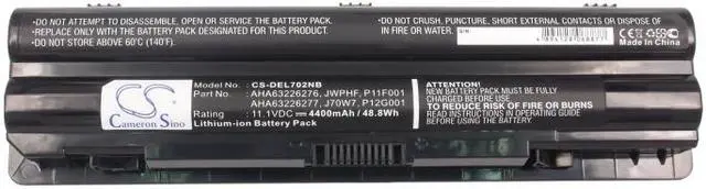Battery for DELL XPS 14 XPS 14 (L401X) XPS 15 XPS 15 (L501X) XPS 17 XPS 17 Compatible with the following devices XPS 14, XPS 14 (L401X), XPS 15, XPS 15 (L501X), XPS 17, XPS 17 (L701X), XPS 17 (L702X), XPS L401X, XPS L501X, XPS L502X, XPS L701X, XPS L702X Compatible with Battery Part Numbers 08PGNG, 0J70W7, 0JWPHF, 0R4CN5, 312-1123, 8PGNG, 991T2021F, 999T2128F, AHA63226267, AHA63226268, AHA63226270, AHA63226276, AHA63226277, J70W7, JWPHF, P09E, P09E001, P09E002, P11F, P11F001, P12G, P12G001, R4CN5, R795X