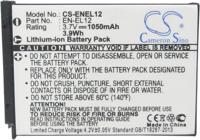 Battery Part Numbers EN-EL12 Capacity: 3.7V 1050mAh / 3.89W h