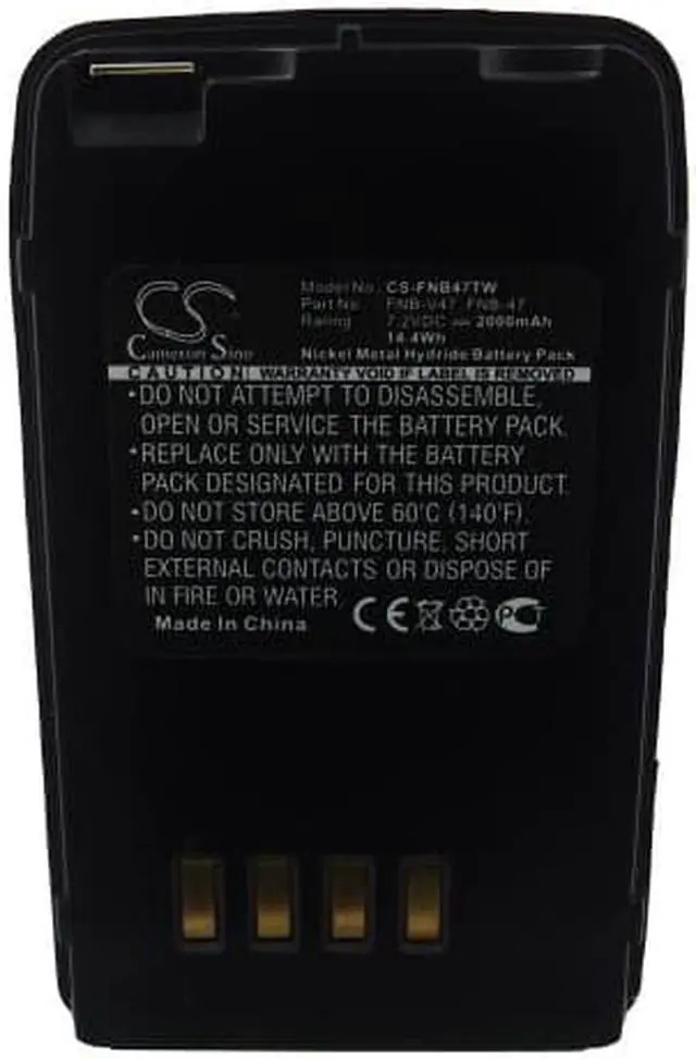 Two-Way Radio Battery for Vertex FNB-47 FNB-47H FNB-V47 FNB-V47IS FNB-V49 Compatible with the following devices FT10R, FT-10R, FT40R, FT-40R, FT50R, FT-50R, VX10, VX-10, YAESU FT10R, FT-10R, FT40R, FT-40R, FT50R, FT-50R, VX10, VX-10 Compatible with Battery Part Numbers FNB-47, FNB-47H, FNB-V47, FNB-V47IS, FNB-V49, FNB-V49H, YAESU FNB-47, FNB-47H, FNB-V47, FNB-V47IS, FNB-V49, FNB-V49H
