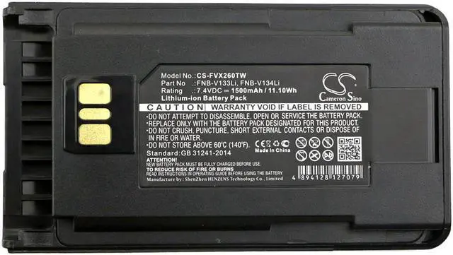 Two-Way Radio Battery for Vertex AAJ67X001 AAJ68X001 FNB-V133Li FNB-V134Li Compatible with the following devices EVX-231, EVX-261, EVX-530, EVX-531, EVX-534, EVX-539, VX-260, VX-261, VX-451, VX-454, VX-456, VX-459, YAESU EVX-530, EVX-531, EVX-534, EVX-539, VX-260, VX-261 Compatible with Battery Part Numbers AAJ67X001, AAJ68X001, FNB-V133Li, FNB-V134Li, FNB-V138Li, YAESU AAJ67X001, FNB-V133Li, FNB-V134Li, FNB-V138Li