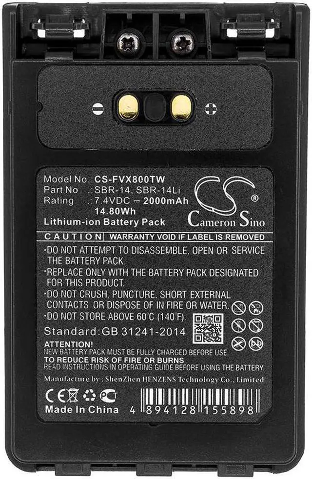 Battery for YAESU FT-1DR FT-2DR FT-3D FT-8DR VX-8DR VX-8GR VX-8R SBR-14 SBR-14Li Compatible with the following devices FT-1DR, FT-2DR, FT-3D, FT-8DR, VX-8DR, VX-8GR, VX-8R Compatible with Battery Part Numbers SBR-14, SBR-14Li