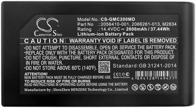Battery for GE MAC 2000 MAC 2000 EKG 2056410-001 2066261-013 M2834 CS-GMC200MD Compatible with the following devices MAC 2000, MAC 2000 EKG Compatible with Battery Part Numbers 2056410-001, 2066261-013, M2834