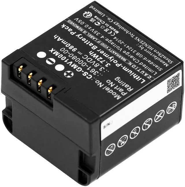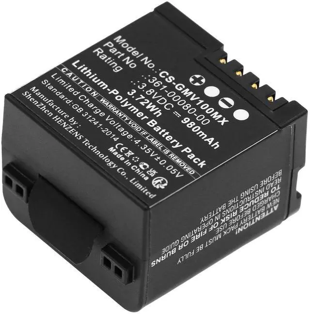 Battery for Garmin Virb X Virb X Compact VIRB XE 010-12256-01 361-00080-00 Compatible with the following devices Virb X, Virb X Compact, VIRB XE Compatible with Battery Part Numbers 010-12256-01, 361-00080-00