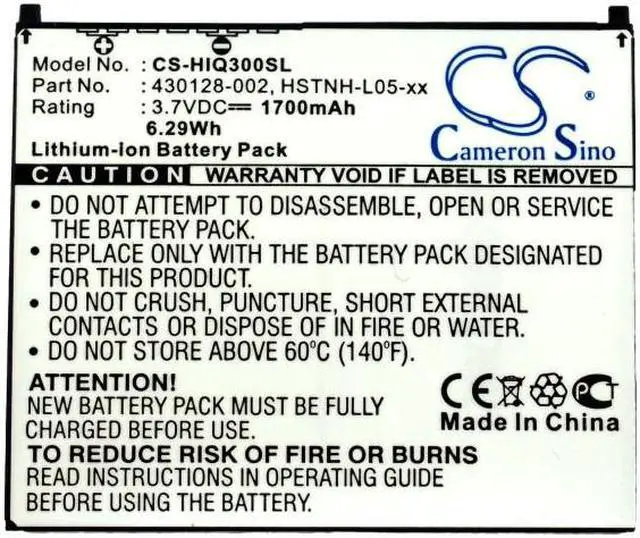 Battery for HP iPAQ 300 iPAQ 310 iPAQ 312 iPAQ 314 iPAQ 316 iPAQ FA976AT iPAQ Compatible with the following devices iPAQ 300, iPAQ 310, iPAQ 312, iPAQ 314, iPAQ 316, iPAQ FA976AT, iPAQ FA977AA, iPAQ FB077AA, iPAQ FB078AA, iPAQ FB079AT Compatible with Battery Part Numbers 430128-002, HSTNH-F15C, HSTNH-L05-xx, HSTNH-S12B