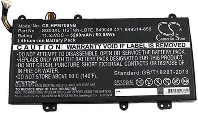 Battery for HP 17t-u000 17-U000 ENVY 17T-U000 ENVY 17t-u000 CTO Envy 17-U011NR Compatible with the following devices 17t-u000, 17-U000, ENVY 17T-U000, ENVY 17t-u000 CTO, Envy 17-U011NR, Envy 17-U018CA, Envy 17-U108CA, Envy 17-U110NR, Envy 17-U153NR, Envy 17-U163CL, Envy 17-U175NR, Envy 17-U177CL, Envy 17-U193MS, Envy 17-U220NR, Envy 17-U273CL, Envy 17-U275CL, Envy 17-U292CL, Envy 17-U294CL, Envy 17-U296CL, Envy M7U, Envy M7-U009DX, Envy M7-U010DX, Envy M7-U011DX, Envy M7-U105DX, Envy M7-U109DX, ENVY Notebook 17t-u000 CTO, M7-U000, W2K86UA, W2K88UA, W2K89UA, W2K91UA, W2K92UA, W2K93UA, W7D93UA Compatible with Battery Part Numbers 849048-421, 849049-421, 849314-850, 849314-856, 849315-850, 849315-856, HSTNN-LB7E, HSTNN-LB7F, SG03041XL, SG03061XL, SG03061XL-PR, SG03XL, SGO3XL, TPN-I126