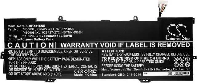 Battery for HP Spectre X360 15-CH000NA Spectre X360 15-CH000NB Spectre X360 Compatible with the following devices Spectre X360 15-CH000NA, Spectre X360 15-CH000NB, Spectre X360 15-CH000ND, Spectre X360 15-CH000NF, Spectre X360 15-CH000NO, Spectre X360 15-CH000TX, Spectre X360 15-CH000UR, Spectre X360 15-CH001NB, Spectre X360 15-CH001NC, Spectre X360 15-CH001NF, Spectre X360 15-CH001NG, Spectre X360 15-CH001NO, Spectre X360 15-CH001UR, Spectre X360 15-CH002NB, Spectre X360 15-CH002NC, Spectre X360 15-CH002NF, Spectre X360 15-CH002NG, Spectre X360 15-CH002NO, Spectre X360 15-CH002TX, Spectre X360 15-CH002UR, Spectre X360 15-CH003NF, Spectre X360 15-CH003NG, Spectre X360 15-CH003NO, Spectre X360 15-CH003TX, Spectre X360 15-CH003UR, Spectre X360 15-CH004NA, Spectre X360 15-CH004NB, Spectre X360 15-CH004NC, Spectre X360 15-CH004NF, Spectre X360 15-CH004NG, Spectre X360 15-CH004NL, Spectre X360 15-CH004NO, Spectre X360 15-CH004UR, Spectre X360 15-CH005NA, Spectre X360 15-CH005NF, Spectre X360 15-CH005NG, Spectre X360 15-CH005NO, Spectre X360 15-CH005TX, Spectre X360 15-CH005UR, Spectre X360 15-CH006NA, Spectre X360 15-CH006NF, Spectre X360 15-CH006NG, Spectre X360 15-CH006NO, Spectre X360 15-CH006TX, Spectre X360 15-CH007NA, Spectre X360 15-CH007NF, Spectre X360 15-CH007NG, Spectre X360 15-CH007TX, Spectre X360 15-CH008CA, Spectre X360 15-CH008NA, Spectre X360 15-CH008NC, Spectre X360 15-CH008NG, Spectre X360 15-CH008TX, Spectre X360 15-CH009NG, Spectre X360 15-CH009TX, Spectre X360 15-CH010CA, Spectre X360 15-CH010ND, Spectre X360 15-CH010NG, Spectre X360 15-CH010TX, Spectre X360 15-CH011DX, Spectre X360 15-CH011NF, Spectre X360 15-CH011NO, Spectre X360 15-CH011NR, Spectre X360 15-CH012NF, Spectre X360 15-CH012NR, Spectre X360 15-CH013TX, Spectre X360 15-CH015ND, Spectre X360 15-CH020ND, Spectre X360 15-CH025ND, Spectre X360 15-CH030NZ, Spectre X360 15-CH031NG, Spectre X360 15-CH032NG, Spectre X360 15-CH034NG, Spectre X360 15-CH040NZ, Spectre X360 15-CH050NZ, Spectre X360 15-CH054NA, Spectre X360 15-CH055NA, Spectre X360 15-CH060NZ, Spectre X360 15-CH070NZ, Spectre X360 15-CH075NR, Spectre X360 15-CH090NZ, Spectre X360 15-CH099NA Compatible with Battery Part Numbers 928372-856, 928427-271, 928427-272, HSTNN-DB8H, YB06084XL, YB06XL