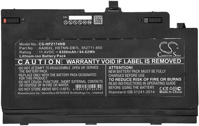 Battery for HP ZB00K 17 G4-1RR26ES ZBook 17 G3 Mobile Workstation ZBook 17 G4 Compatible with the following devices ZB00K 17 G4-1RR26ES, ZBook 17 G3 Mobile Workstation, ZBook 17 G4, ZBook 17 G4 Mobile Workstation, ZBook 17 G4 (1JA86AW), ZBook 17 G4 (1JA88AW), ZBook 17 G4 (1RQ78EA), ZBook 17 G4 (1RQ80EA), ZBook 17 G4 (1RQ90ES), ZBook 17 G4 (1RQ93ES), ZBook 17 G4 (1RR15EA), ZBook 17 G4 (1RR23ES), ZBook 17 G4 (1RR25ES), ZBook 17 G4 (1RR26ES), ZBook 17 G4 (2ZC18ES), ZBook 17 G4 (Y6K23EA), ZBook 17 G4 (Y6K36EA), ZBook 17 G4 (Y6K38EA), ZBook 17 G4-1JA88AW, Zbook 17 G4-1NL44UT, ZBook 17 G4-1RQ78EA, ZBook 17 G4-1RQ80EA, ZBook 17 G4-1RQ93ES, ZBook 17 G4-1RR15EA, ZBook 17 G4-1RR25ES, ZBook 17 G4-1RR26ES, ZBook 17 G4-2ZC18ES, ZBook 17 G4-Y3J82AV, ZBook 17 G4-Y6K23E, ZBook 17 G4-Y6K23EA, ZBook 17 G4-Y6K36EA, ZBook 17 G4-Y6K38EA Compatible with Battery Part Numbers 852527-221, 852527-222, 852527-241, 852527-242, 852711-850, AA06096XL, AA06XL, HQ-TRE, HSTNN-C86C, HSTNN-DB7L, Z3R03AA, Z3R03AA-NB, Z3R03UT