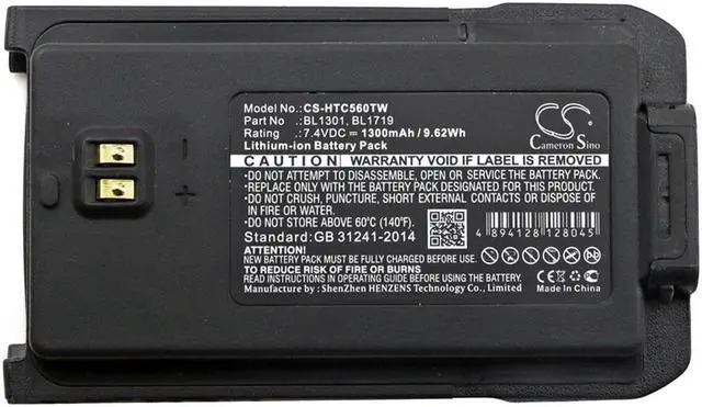 Two-Way Radio Battery for HYT BL1301 BL1719 TC-446S TC-500S TC-518 TC-518U Compatible with the following devices TC-446S, TC-500S, TC-518, TC-518U, TC-518V, TC-560, TC-580, TC-585 Compatible with Battery Part Numbers BL1301, BL1719