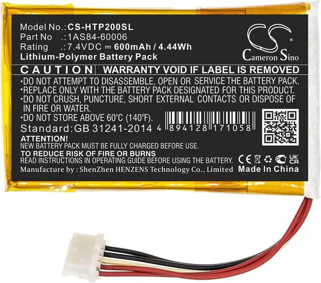 Battery for HP Sprocket 200 1AS84-60006 Photo Printer CS-HTP200SL 7.4 v 600mAh / Compatible with the following devices Sprocket 200 Compatible with Battery Part Numbers 1AS84-60006