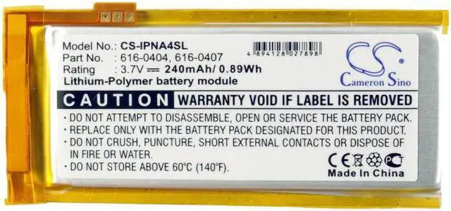 Battery for Apple iPod Nano 4th 16GB iPod Nano 4th 4GB iPod Nano 4th 8GB iPod Compatible with the following devices iPod Nano 4th 16GB, iPod Nano 4th 4GB, iPod Nano 4th 8GB, iPod Nano 4th MB903LL/A Compatible with Battery Part Numbers 616-0405, 616-0407, P11G73-01-S01