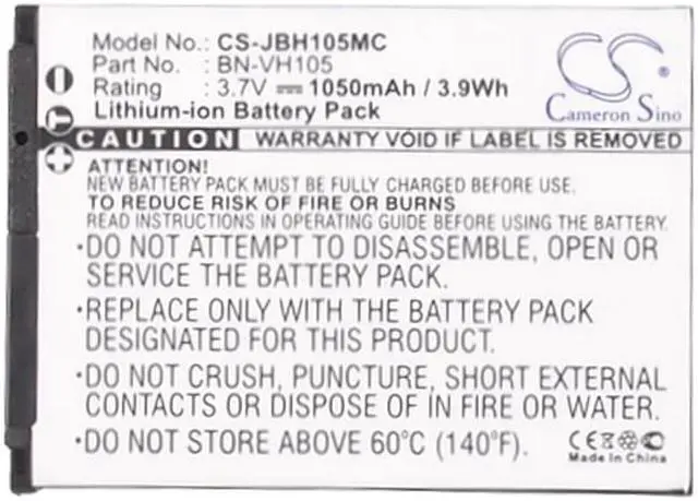 Battery for JVC ADIXXION ADIXXION Action GC-XA1 GC-XA1BUS GC-XA2 BN-VH105 Compatible with the following devices ADIXXION, ADIXXION Action, GC-XA1, GC-XA1BUS, GC-XA2 Compatible with Battery Part Numbers BN-VH105, BN-VH105US