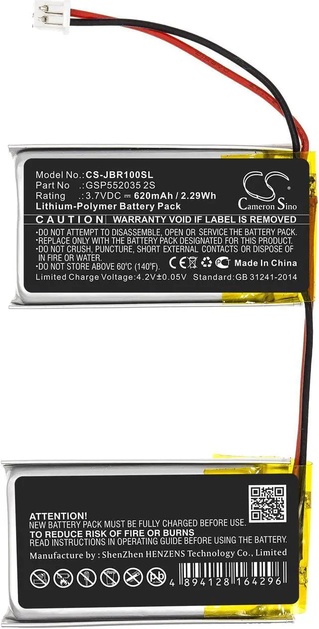 Battery for JBL ROCK GSP552035 2S Speaker CS-JBR100SL 3.7 v 620mAh / Compatible with the following devices ROCK Compatible with Battery Part Numbers GSP552035 2S