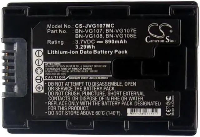 Battery for JVC GZ-E10 GZ-E100 GZ-E200 GZ-E200AU GZ-E200BU GZ-E200RU GZ-E205 Compatible with the following devices GZ-E10, GZ-E100, GZ-E200, GZ-E200AU, GZ-E200BU, GZ-E200RU, GZ-E205, GZ-E220, GZ-E245, GZ-E300, GZ-E300AU, GZ-E300BU, GZ-E300WU, GZ-E306, GZ-E505, GZ-E505BU, GZ-E565, GZ-EX210, GZ-EX210BU, GZ-EX215, GZ-EX250, GZ-EX250BUS, GZ-EX265, GZ-EX275, GZ-EX310, GZ-EX310AU, GZ-EX310BU, GZ-EX310WU, GZ-EX355, GZ-EX515, GZ-EX555, GZ-EX555BU, GZ-EX575, GZ-G3, GZ-GX1, GZ-GX1BU, GZ-GX8, GZ-HD500, GZ-HD500BU, GZ-HD500BUS, GZ-HD500SEK, GZ-HD500SEU, GZ-HD500U, GZ-HD510, GZHD520, GZ-HD520, GZ-HD550, GZ-HD620, GZ-HD620-B, GZ-HD620BAH, GZ-HD620BEU, GZ-HD620BU, GZ-HD620BUS, GZ-HD620-R, GZ-HD620-S, GZ-HD620U, GZ-HD750, GZ-HD760, GZ-HM30, GZ-HM300, GZ-HM300BU, GZ-HM300BUS, GZ-HM300SEK, GZ-HM300SEU, GZ-HM300U, GZ-HM30U, GZ-HM310, GZ-HM320, GZ-HM320BUS, GZ-HM320U, GZ-HM330, GZ-HM330BEK, GZ-HM330BEU, GZ-HM330SEU, GZ-HM334, GZ-HM334BEU, GZ-HM335, GZ-HM335BEU, GZ-HM340, GZ-HM35, GZ-HM350, GZ-HM35U, GZ-HM40, GZ-HM430, GZ-HM435, GZ-HM440, GZ-HM445, GZ-HM446, GZ-HM450, GZ-HM50, GZ-HM50U, GZ-HM550, GZ-HM550BEK, GZ-HM550BEU, GZ-HM550BU, GZ-HM550BUS, GZ-HM550U, GZ-HM570, GZ-HM65, GZ-HM650, GZ-HM650BU, GZ-HM655, GZ-HM670, GZ-HM690, GZ-HM845, GZ-HM855, GZ-HM860, GZ-HM870, GZ-HM880, GZ-HM890, GZ-HM960, GZ-HM970, GZ-HM980, GZ-HM990, GZ-MG680, GZ-MG750, GZ-MG750AU, GZ-MG750AUC, GZ-MG750BEK, GZ-MG750BEU, GZ-MG750BU, GZ-MG750BUC, GZ-MG750BUS, GZ-MG750RU, GZ-MG750RUC, GZ-MG750U, GZ-MG760, GZ-MG980, GZ-MG980-A, GZ-MG980-R, GZ-MG980-S, GZ-MS110, GZ-MS110BEK, GZ-MS110BEU, GZ-MS110BU, GZ-MS110BUC, GZ-MS110BUS, GZ-MS110U, GZ-MS118, GZ-MS150, GZ-MS210, GZ-MS210AEK, GZ-MS210AEU, GZ-MS210BEU, GZ-MS210BUC, GZ-MS210SEK, GZ-MS210SEU, GZ-MS210U, GZ-MS215, GZ-MS215BEU, GZ-MS215PEU, GZ-MS215SEU, GZ-MS216, GZ-MS216AEU, GZ-MS216BEU, GZ-MS216REU, GZ-MS216SEU, GZ-MS230, GZ-MS230AU, GZ-MS230AUC, GZ-MS230AUS, GZ-MS230BEU, GZ-MS230BU, GZ-MS230BUC, GZ-MS230BUS, GZ-MS230RU, GZ-MS230RUC, GZ-MS230RUS, GZ-MS230U, GZ-MS240, GZ-MS240AUS, GZ-MS250, GZ-MS250BEK, GZ-MS250BEU, GZ-MS250BU, GZ-MS250BUC, GZ-MS250BUS, GZ-MS250U Compatible with Battery Part Numbers BN-VG107, BN-VG107E, BN-VG107U, BN-VG107US, BN-VG108, BN-VG108E, BN-VG108U, BN-VG108USM