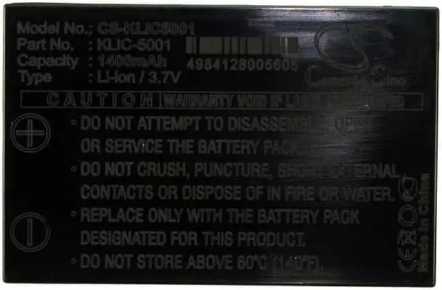 Battery for KODAK EasyShare DX6490 EasyShare DX7440 EasyShare DX7440 Zoom Compatible with the following devices EasyShare DX6490, EasyShare DX7440, EasyShare DX7440 Zoom, EasyShare DX7590, EasyShare DX7590 Zoom, EasyShare DX7630, EasyShare P712, EasyShare P850, EasyShare P880, EasyShare Z730, EasyShare Z730 Zoom, EasyShare Z7590, EasyShare Z7590 Zoom, EasyShare Z760, EasyShare Z760 Zoom, Sanyo Xacti DMX-FH11, Xacti DMX-HD1010, Xacti DMX-HD2000, Xacti DMX-WH1, Xacti NV-SB360DT, Xacti VPC-FH1, Xacti VPC-FH1A, Xacti VPC-HD1000, Xacti VPC-HD1010, Xacti VPC-HD2000, Xacti VPC-HD2000A, Xacti VPC-TH1, Xacti VPC-WH1, NEC NSIO-1000 Compatible with Battery Part Numbers 1054062, KLIC-5001, Sanyo DB-L50, DB-L50AU, NVP-D7, NEC NSIO-1000BP, YNH-0000041-002