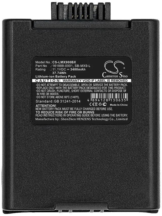 Battery for Honeywell MX9380 MX9381 MX9382 MX9383 LXE FC3 MX9 MX9380 MX9381 Compatible with the following devices MX9380, MX9381, MX9382, MX9383, LXE FC3, MX9, MX9380, MX9381, MX9A1B1B1F1A0US, MX9AB4M0K1FCBDA0S0RTUSW600, MX9H, ITRON FC300 Compatible with Battery Part Numbers 161888-0001, 161915-0001, SB-MX9-L, LXE 161888-0001, SB-MX9-L, ITRON 161888-0001, SB-MX9-LPanasonic Cells.