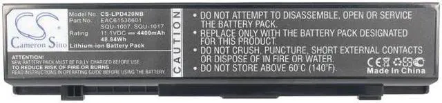 Battery for LG Aurora ONOTE S430 Aurora S530 P420-5000 P420-5110 P420-5300 Compatible with the following devices Aurora ONOTE S430, Aurora S530, P420-5000, P420-5110, P420-5300, P420-G. AE34E, P420-GBC43P1, P420-GE34, P420-K5300, P420-Ke45k, P420-N. AE21G, P420-N. AE40V, S430, S530, Xnote P420, Xnote PD420, Xnote S530 Compatible with Battery Part Numbers EAC61538601, SQU-1007, SQU-1017