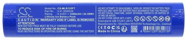 Battery Part Numbers ILIF-3006526 Capacity: 6.4V 3200mAh / 20.48W h