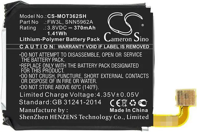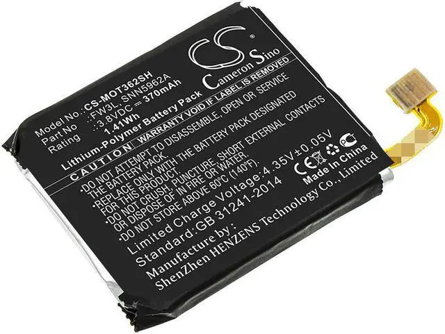Battery for Motorola Moto 360 2nd 2015 FW3L SNN5962A Smartwatch CS-MOT362SH 3.8 v Compatible with the following devices Moto 360 2nd 2015 Compatible with Battery Part Numbers FW3L, SNN5962A
