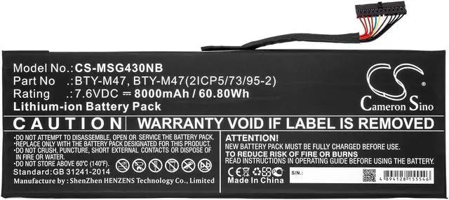 Battery for MSI GS40 GS40 6QD GS40 6QD Phantom GS40 6QD-002TW GS40 6QD-006CZ Compatible with the following devices GS40, GS40 6QD, GS40 6QD Phantom, GS40 6QD-002TW, GS40 6QD-006CZ, GS40 6QD-012TW, GS40 6QE, GS40 6QE Phantom, GS40 6QE Phantom Notebook, GS40 6QE (Phantom) -027, GS40 6QE-006XCN, GS40 6QE-007AU, GS40 6QE-009XTH, GS40 6QE-011NE, GS40 6QE-012NL, GS40 6QE-013BE, GS40 6QE-014FR, GS40 6QE-014FR Phantom, GS40 6QE-015FR, GS40 6QE-017XPL, GS40 6QE-019RU, GS40 6QE-019RU PHANTOM, GS40 6QE-020RU, GS40 6QE-020RU PHANTOM, GS40 6QE-026CZ, GS40 6QE-026CZ PHANTOM, GS40 6QE-027UK, GS40 6QE-028UK, GS40 6QE-032ZA, GS40 6QE-041ES, GS40 6QE-053UK, GS40 6QE-055XCN, GS40 6QE-079NL, GS40 6QE-081MY, GS40 6QE-090UK, GS40 6QE16H11, GS40 6QE16H21, GS40 6QE-215X, GS40 6QE-228AU, GS40 6QE-230CZ, GS40 6QE81FD, GS40 PHANTOM-001, GS40-6QE, GS40-6QE-027UK, GS40-6QE16H11, GS40-6QE16H21, GS40-6QE81FD, GS43, GS43 6RE-025AU, GS43 7RE, GS43 7RE PHANTOM PRO-074AU, GS43 Phantom Pro 006, GS43VR, GS43VR 6RE, GS43VR 6RE Phantom Pro, GS43VR 6RE (Phantom Pro) -002UK, GS43VR 6RE (PHANTOM PRO) -022SG, GS43VR 6RE-002UK, GS43VR 6RE-006US, GS43VR 6RE-007RU, GS43VR 6RE-007RU PHANTOM PRO, GS43VR 6RE-008NE, GS43VR 6RE-009NL, GS43VR 6RE-009NL PHANTOM PRO, GS43VR 6RE-021CZ, GS43VR 6RE-037FR, GS43VR 6RE-045CN, GS43VR 6RE-053ES, GS43VR 6RE16H21, GS43VR 6RE16H21(0014A3-SKU1), GS43VR 6REAC16H21, GS43VR 6REAC16H21(0014A3-SKU31, GS43VR 7RE, GS43VR 7RE PHANTOM PRO, GS43VR 7RE PHANTOM PRO-7RE-064, GS43VR 7RE (Phantom Pro) -061UK, GS43VR 7RE-045CN, GS43VR 7RE-062, GS43VR 7RE-064, GS43VR 7RE-077TW, GS43VR 7RE-203XES, GS43VR 7RE-220CN, GS43VR PHANTOM PRO-069, GS43VR PHANTOM PRO-210, GS43VR-6RE, GS43VR-6RE16H21, GS43VR-6REAC16H21, GS43VR-7RE, GS43VR-7RE-062, GS43VR-7RE-064, MS-14A1, MS-14A2, MS-14A3, Terrans Force FORCE S4, S4-1060, S4-1060-67SH1, S4-1060-67T, S4-1060-77H, S4-1060-77SH1, S4-1060-77SH3, S4-1060-77T, S4-1060-ZXG1, S4-1060-ZXG2 Compatible with Battery Part Numbers BTY-M47, BTY-M47(2ICP5/73/95-2), Terrans Force BTY-M47, BTY-M47(2ICP5/73/95-2)