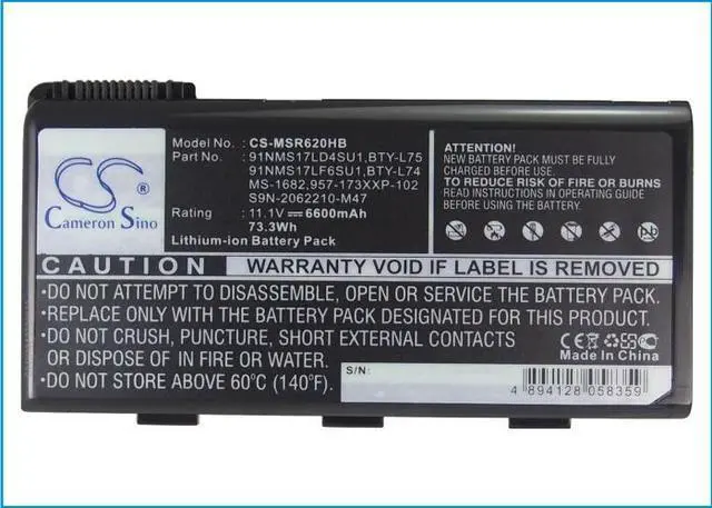 Battery for MSI A5000 A6005 A7200 CR500 CR600 CR600-001US CR600-013US Compatible with the following devices A5000, A6005, A7200, CR500, CR600, CR600-001US, CR600-013US, CR600-017US, CR600-234US, CR610, CR610 C61M32-HDSB, CR610 MS-3801, CR610 MS-6890, CR610 MS-6891, CR610-001NL, CR610-003HU, CR610-005, CR610-006, CR610-006NE, CR610-007PL, CR610-009PL, CR610-011IT, CR610-013, CR610-013UK, CR610-016UK, CR610-026XCZ, CR610-027XSK, CR610-028X, CR610-028XHU, CR610-031LRU, CR610-033, CR610-050BE, CR610-051, CR610-058PL, CR610-059PL, CR610-060XPL, CR610-061XPL, CR610-062NL, CR610-063BE, CR610-070X, CR610-070XEU, CR610-075AR, CR610-081XHU, CR610-091XBL, CR610-092XAR, CR610-097RU, CR610-0W1XBL, CR610-0W2XEU, CR610-M1005Q, CR610-M1023W7P, CR610-M1025W7P, CR610-M1226W7P, CR610-M320, CR610-M3243W7P, CR620, CR630-002XUA, CR630-009, CR630-010, CR630-010X, CR630-015CZ, CR630-018NL, CR630-020NE, CR630-022XIT, CR630-024XCZ, CR630-025XHU, CR630-034X, CR630-042PL, CR630-043XPL, CR630-044PL, CR630-056, CR630-088XYU, CR630-Blu-Ray, CR630-P3443W7P, CR630-V1216FD, CR630-V1225FD, CR630-V1225W7P, CR700, CR700 MS-1734, CR700-012US, CR700-013NL, CR700-017CA, CR700-024, CR700-034, CR700-038PL, CR700-047US, CR700-060X, CR700-063X, CR700-068XEU, CR700-070XSK, CR700-071XHU, CR700-075, CR700-085FR, CR700-099NL, CR700-200BE, CR700-202XEU, CR700-204BE, CR700-205NE, CR700-206RU, CR700-211, CR700-211FR, CR700-220XCZ, CR700-221XSK, CR700-2226, CR700-223L, CR700-223LRU, CR700-231, CR700-T3035FD, CR700-T6600, CR700X-029EU, CX500, CX500-004RU, CX500-006, CX500-010TR, CX500-016RU, CX500-026L, CX500-034, CX500-037LRU, CX500-296BE, CX500-299, CX500-299XEU, CX500-402XHU, CX500-403XBL, CX500-404X, CX500-406TR, CX500-408IT, CX500-414, CX500-414IT, CX500-416XEU, CX500-419XHU, CX500-427LUA, CX500-428LUA, CX500-429LUA, CX500-430LUA, CX500-431UA, CX500-432UA, CX500-441XCN, CX500-444NL, CX500-457, CX500-457RU, CX500-472, CX500-472RU, CX500-476L, CX500-490L, CX500-492, CX500-497, CX500-498, CX500-498RU, CX500-499BE, CX500-604XBL, CX500-605XEU, CX500-607SK, CX500-DX-638SK, CX500-DX-639XEU, CX500-T4543W7P, CX500-T6602G50SX, CX500-T6648W7P, CX600, CX600-049US, CX600-064UK, CX-600-T4343W7P, CX605, CX610-050BE, CX620, CX620-008XEU, CX620-013XEU, CX620-019NE, CX620-035AU, CX620-061, CX620-223BE, CX620MX, CX620X, CX623, CX623-005NL, CX623-006BE, CX623-007NE, CX623-01, CX623-014XEU, CX623-015CZ, CX623-017XHU, CX623-018XBL, CX623-019X, CX623-019XEU, CX623-02, CX623-020CZ, CX623-021SK, CX623-022XHU, CX623-023NL, CX623-025, CX623-025NE, CX623-028BL, CX623-033, CX623-033FR, CX623-034IT, CX623-043, CX623-048XUA, CX623-049NL, CX623-051NE, CX623-052CZ, CX623-054XEU, CX623-055XHU, CX623-056, CX623-058XBY, CX623-073CZ, CX623-076XHU, CX623-079PL, CX623-079XPL, CX623-081NL, CX623-084NL, CX623-085BE, CX623-087X, CX623-087XEU, CX623-088X, CX623-088XHU, CX623-096UK, CX623-168A, CX623-201, CX623-219, CX623-AS, CX623-i3743W7P, CX623-i5443, CX623-i5443W7P, CX623-i5647W7P, CX623-P6033W7P, CX700, MS-1681, MS-1683, MS-1734, MS-1736, MSI A6000, MSI A6200 Compatible with Battery Part Numbers 91NMS17LD4SU1, 91NMS17LF6SU1, 957-173XXP-101, 957-173XXP-102, BTY-L74, BTY-L75, MS-1682, S9N-2062210-M479