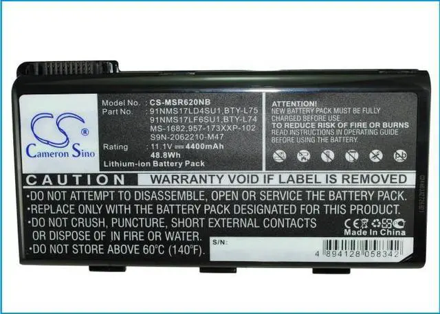 Battery for MSI A5000 A6005 A7200 CR500 CR600 CR600-001US CR600-013US Compatible with the following devices A5000, A6005, A7200, CR500, CR600, CR600-001US, CR600-013US, CR600-017US, CR600-234US, CR610, CR610 C61M32-HDSB, CR610 MS-3801, CR610 MS-6890, CR610 MS-6891, CR610-001NL, CR610-003HU, CR610-005, CR610-006, CR610-006NE, CR610-007PL, CR610-009PL, CR610-011IT, CR610-013, CR610-013UK, CR610-016UK, CR610-026XCZ, CR610-027XSK, CR610-028X, CR610-028XHU, CR610-031LRU, CR610-033, CR610-050BE, CR610-051, CR610-058PL, CR610-059PL, CR610-060XPL, CR610-061XPL, CR610-062NL, CR610-063BE, CR610-070X, CR610-070XEU, CR610-075AR, CR610-081XHU, CR610-091XBL, CR610-092XAR, CR610-097RU, CR610-0W1XBL, CR610-0W2XEU, CR610-M1005Q, CR610-M1023W7P, CR610-M1025W7P, CR610-M1226W7P, CR610-M320, CR610-M3243W7P, CR620, CR630-002XUA, CR630-009, CR630-010, CR630-010X, CR630-015CZ, CR630-018NL, CR630-020NE, CR630-022XIT, CR630-024XCZ, CR630-025XHU, CR630-034X, CR630-042PL, CR630-043XPL, CR630-044PL, CR630-056, CR630-088XYU, CR630-Blu-Ray, CR630-P3443W7P, CR630-V1216FD, CR630-V1225FD, CR630-V1225W7P, CR700, CR700 MS-1734, CR700-012US, CR700-013NL, CR700-017CA, CR700-024, CR700-034, CR700-038PL, CR700-047US, CR700-060X, CR700-063X, CR700-068XEU, CR700-070XSK, CR700-071XHU, CR700-075, CR700-085FR, CR700-099NL, CR700-200BE, CR700-202XEU, CR700-204BE, CR700-205NE, CR700-206RU, CR700-211, CR700-211FR, CR700-220XCZ, CR700-221XSK, CR700-2226, CR700-223L, CR700-223LRU, CR700-231, CR700-T3035FD, CR700-T6600, CR700X-029EU, CX500, CX500-004RU, CX500-006, CX500-010TR, CX500-016RU, CX500-026L, CX500-034, CX500-037LRU, CX500-296BE, CX500-299, CX500-299XEU, CX500-402XHU, CX500-403XBL, CX500-404X, CX500-406TR, CX500-408IT, CX500-414, CX500-414IT, CX500-416XEU, CX500-419XHU, CX500-427LUA, CX500-428LUA, CX500-429LUA, CX500-430LUA, CX500-431UA, CX500-432UA, CX500-441XCN, CX500-444NL, CX500-457, CX500-457RU, CX500-472, CX500-472RU, CX500-476L, CX500-490L, CX500-492, CX500-497, CX500-498, CX500-498RU, CX500-499BE, CX500-604XBL, CX500-605XEU, CX500-607SK, CX500-DX-638SK, CX500-DX-639XEU, CX500-T4543W7P, CX500-T6602G50SX, CX500-T6648W7P, CX600, CX600-049US, CX600-064UK, CX-600-T4343W7P, CX605, CX610-050BE, CX620, CX620-008XEU, CX620-013XEU, CX620-019NE, CX620-035AU, CX620-061, CX620-223BE, CX620MX, CX620X, CX623, CX623-005NL, CX623-006BE, CX623-007NE, CX623-01, CX623-014XEU, CX623-015CZ, CX623-017XHU, CX623-018XBL, CX623-019X, CX623-019XEU, CX623-02, CX623-020CZ, CX623-021SK, CX623-022XHU, CX623-023NL, CX623-025, CX623-025NE, CX623-028BL, CX623-033, CX623-033FR, CX623-034IT, CX623-043, CX623-048XUA, CX623-049NL, CX623-051NE, CX623-052CZ, CX623-054XEU, CX623-055XHU, CX623-056, CX623-058XBY, CX623-073CZ, CX623-076XHU, CX623-079PL, CX623-079XPL, CX623-081NL, CX623-084NL, CX623-085BE, CX623-087X, CX623-087XEU, CX623-088X, CX623-088XHU, CX623-096UK, CX623-168A, CX623-201, CX623-219, CX623-AS, CX623-i3743W7P, CX623-i5443, CX623-i5443W7P, CX623-i5647W7P, CX623-P6033W7P, CX700, MS-1681, MS-1683, MS-1734, MS-1736, MSI A6000, MSI A6200 Compatible with Battery Part Numbers 91NMS17LD4SU1, 91NMS17LF6SU1, 957-173XXP-101, 957-173XXP-102, BTY-L74, BTY-L75, MS-1682, S9N-2062210-M476