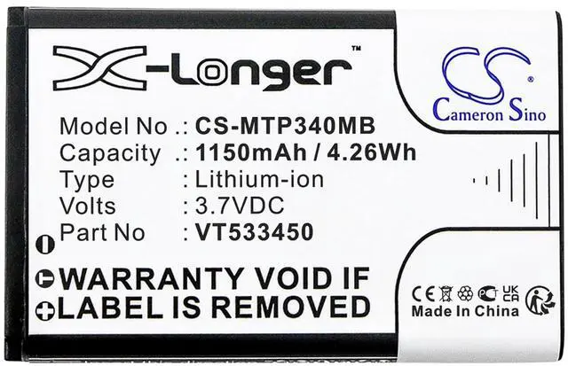 Battery Part Numbers VT533450X-Longer Capacity: 3.7V 1150mAh / 4.26W h