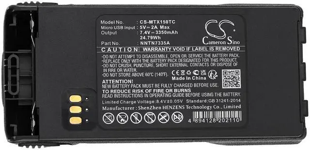Battery for Motorola MT1500 NT1500 PR1500 Radius P25 XTS 1000 XTS 1500 XTS 2000 Compatible with the following devices MT1500, NT1500, PR1500, Radius P25, XTS 1000, XTS 1500, XTS 2000, XTS 2500, XTS1500, XTS2500 Compatible with Battery Part Numbers HNN9815, NNTN6263, NNTN7032, NNTN7032A, NNTN7032B, NNTN7335, NNTN7335A, NNTN7335B, NNTN7554, NNTN9857, NNTN9858, NTA9858A, NTN9814, NTN9814MHX, NTN9815, NTN9815_R, NTN9815A, NTN9815AR, NTN9815B, NTN9816, NTN9816AR, NTN9816B, NTN9851AR, NTN9851B, NTN9857AR, NTN9857B, NTN9857C, NTN9858, NTN9858_R, NTN9858A, NTN9858AR, NTN9858B, NTN9858C, NTN9859, NTN9861**Supports Type-C Port