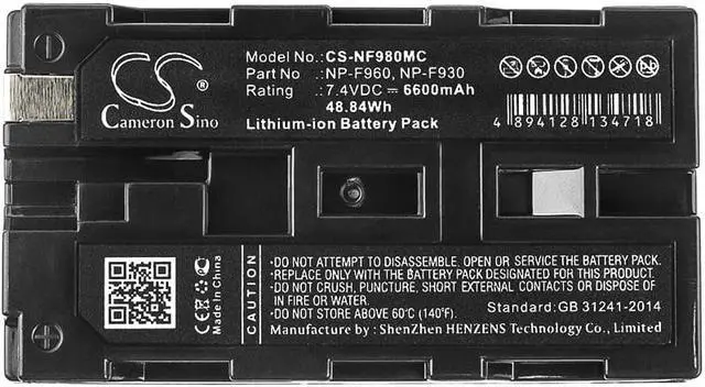 Battery for Sony CCD-RV100 CCD-RV200 CCD-SC5 CCD-SC5/E CCD-SC6 CCD-SC65 CCD-SC7 Compatible with the following devices CCD-RV100, CCD-RV200, CCD-SC5, CCD-SC5/E, CCD-SC6, CCD-SC65, CCD-SC7, CCD-SC7/E, CCD-SC8/E, CCD-SC9, CCD-TR1, CCD-TR11, CCD-TR1100E, CCD-TR12, CCD-TR18, CCD-TR18E, CCD-TR1E, CCD-TR200, CCD-TR205, CCD-TR215, CCD-TR2200E, CCD-TR2300, CCD-TR280PK, CCD-TR290PK, CCD-TR3, CCD-TR300, CCD-TR3000, CCD-TR3000E, CCD-TR311E, CCD-TR315, CCD-TR317, CCD-TR3200E, CCD-TR3300, CCD-TR411E, CCD-TR412E, CCD-TR414, CCD-TR415E, CCD-TR416, CCD-TR417, CCD-TR417E, CCD-TR425E, CCD-TR427, CCD-TR427E, CCD-TR511E, CCD-TR512E, CCD-TR515E, CCD-TR516, CCD-TR516E, CCD-TR57, CCD-TR610, CCD-TR617, CCD-TR617E, CCD-TR618, CCD-TR618E, CCD-TR710, CCD-TR713E, CCD-TR717, CCD-TR717E, CCD-TR718E, CCD-TR728, CCD-TR730E, CCD-TR76, CCD-TR760E, CCD-TR818, CCD-TR840E, CCD-TR845E, CCD-TR87, CCD-TR917, CCD-TR918, CCD-TR918E, CCD-TR930, CCD-TR950E, CCD-TR97, CCD-TRT97, CCD-TRV15, CCD-TRV16E, CCD-TRV201, CCD-TRV215, CCD-TRV25, CCD-TRV26E, CCD-TRV27E, CCD-TRV315, CCD-TRV35, CCD-TRV36, CCD-TRV36E, CCD-TRV37, CCD-TRV37E, CCD-TRV4, CCD-TRV41, CCD-TRV43, CCD-TRV45K, CCD-TRV46, CCD-TRV46E, CCD-TRV47, CCD-TRV47E, CCD-TRV48, CCD-TRV48E, CCD-TRV49, CCD-TRV51, CCD-TRV517, CCD-TRV54E, CCD-TRV57, CCD-TRV57E, CCD-TRV58, CCD-TRV59E, CCD-TRV615, CCD-TRV62, CCD-TRV63, CCD-TRV65, CCD-TRV66, CCD-TRV66K, CCD-TRV67, CCD-TRV67E, CCD-TRV68, CCD-TRV716, CCD-TRV72, CCD-TRV75, CCD-TRV78, CCD-TRV78E, CCD-TRV80PK, CCD-TRV815, CCD-TRV82, CCD-TRV86PK, CCD-TRV87, CCD-TRV87E, CCD-TRV88, CCD-TRV91, CCD-TRV92, CCD-TRV930, CCD-TRV940, CCD-TRV94E, CCD-TRV95, CCD-TRV95E, CCD-TRV95K, CCD-TRV98, CCD-TRV98E, CVX-V18NS (Nightshot Camers), CVX-V18NSP (Nightshot Camers), DCR-TR7, DCR-TR7000, DCR-TR7000E, DCR-TR7100E, DCR-TR8000, DCR-TR8000E, DCR-TR8100E, DCR-TRU47E, DCR-TRV103, DCR-TRV110, DCR-TRV110E, DCR-TRV110K, DCR-TRV120, DCR-TRV120E, DCR-TRV125, DCR-TRV125E, DCR-TRV130, DCR-TRV130E, DCR-TRV210, DCR-TRV210E, DCR-TRV310, DCR-TRV310E, DCR-TRV310K, DCR-TRV315, DCR-TRV320, DCR-TRV420, DCR-TRV420E, DCR-TRV49E, DCR-TRV510, DCR-TRV520, DCR-TRV520E, DCR-TRV525, DCR-TRV58E, DCR-TRV620K, DCR-TRV7, DCR-TRV720, DCR-TRV720E, DCR-TRV735K, DCR-TRV820, DCR-TRV820E, DCR-TRV820K, DCR-TRV900, DCR-TRV900E, DCR-TRV935K, DCR-TV900, DCR-VX2000, DCR-VX2000E, DCR-VX2001, DCR-VX2100, DCR-VX9000, DSR-200, DSR-DU1 (Video Disk Unit), DSR-PD100, DSR-PD100A, DSR-PD100AP, DSR-PD150, DSR-PD150P, DSR-PD170, DSR-PD170P, DSR-PD190P, DSR-V10 (Video Walkman), DSR-V10P (Video Walkman), GV-A100 (Video Walkman), GV-A500E, GV-A700 (Video Walkman), GV-D200 (Video Walkman), GV-D300 (Video Walkman), GV-D800 (Video Walkman), GV-D900 (Video Walkman), HDR-FX1, HDR-FX7, HDR-FX7E, HVL-20DW2 (Video Light), HVL-ML20 (Marine Light), HVR-HD1000U, HVR-M10C (Videocassette record, HVR-M10N (Videocassette record, HVR-M10P (Videocassette record, HVR-V1J, HVR-V1U, HVR-Z1C, HVR-Z1E, HVR-Z1J, HVR-Z1N, HVR-Z1P, HVR-Z1U, MPK-DVF4, MVC-FDR1E (Digital Mavica), MVC-FDR3 (Digital Mavica), PBD-D50 (DVD Player), PBD-V30 (DVD Player), PLM-100 (Glasstron), PLM-50 (Glasstron), PLM-A35 (Glasstron), PLM-A55 (Glasstron), TRV56E, UPX-2000 (Printer) Compatible with Battery Part Numbers NP-F930, NP-F930/B, NP-F950, NP-F950/B, NP-F960, NP-F970, NP-F970/B, NP-F975, XL-B2, XL-B3
