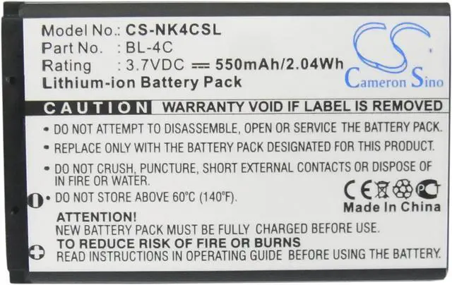 Battery for ROLLEI Compactline 83 SVP 600 700 AGG-023 AGG-052 DV-12T HDDV-8210 Compatible with the following devices Compactline 83, SVP 600, 700, AGG-023, AGG-052, DV-12T, HDDV-8210, HDDV-8250, HDDV-8310, MP-300, T-100, T618, T628, T700, T718, Nokia 107, 108, 1265, 1325, 1661, 2220 Slide, 2650, 2651, 2652, 3108, 3500 Classic, 5100, 6066, 6088, 6100, 6101, 6102i, 6103, 6125, 6126, 6131, 6133, 6136, 6136S, 6170, 6230, 6260, 6300, 6300i, 6301, 6700, 7200, 7270, 7270N, 7705, 8208, C2-05, X2, Olympia Vox Color, Vox Color 2159, MANTA MS1701, TEL2405, TEL2408, BLU Charleston, Click, Click Lite, Deco Mini, Deejay, Deejay Lite, Disco2Go, Flash, Gol, Kick, Samba Elite, Samba Mini, Samba Q, TV2Go, TV2Go Lite, Vida, BBK, i267, i508, i509, i518, i531, i606, K203M, V205, V206, Myphone Compatible with Battery Part Numbers BL-4C, SVP BBA-07, Nokia BL-4C, Olympia BL-4C, MANTA JB-4C, BLU C4C08T, C4C50T, C4C60T, C4C85T, BBK BK-BL-4C, Myphone