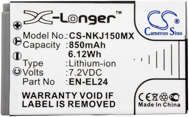 Battery for Nikon 1 J5 EN-EL24 VFB11901 Camera CS-NKJ150MX 7.2 v 850mAh / Compatible with the following devices 1 J5 Compatible with Battery Part Numbers EN-EL24, VFB11901