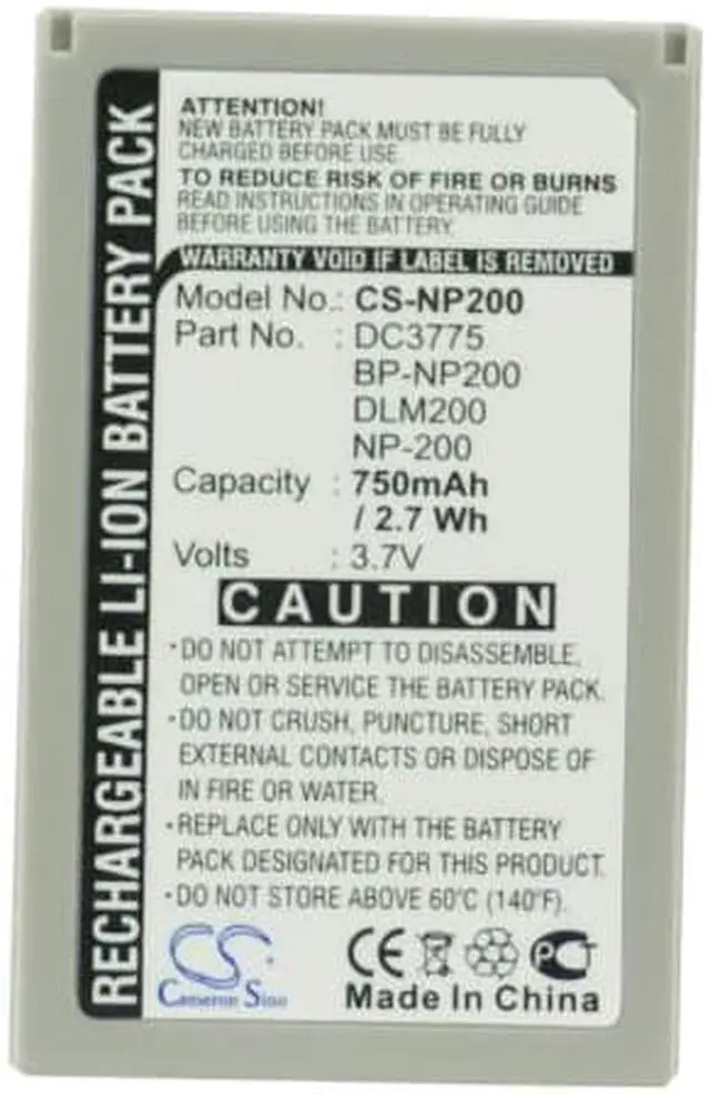 Battery Part Numbers NP-200 Capacity: 3.7V 750mAh