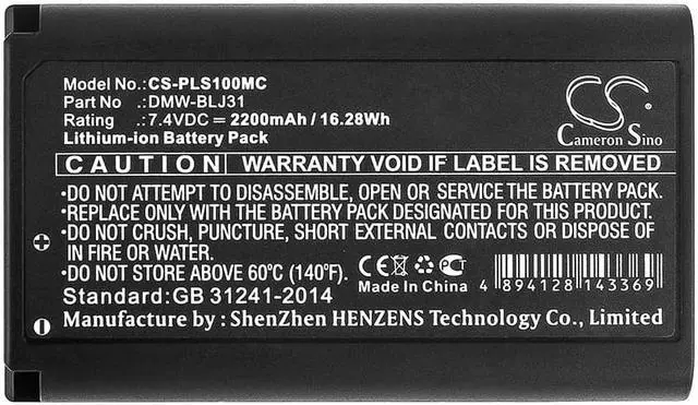 Battery for Panasonic Lumix DC-S1 Lumix DC-S1R Lumix S1 Lumix S1R DMW-BLJ31 Compatible with the following devices Lumix DC-S1, Lumix DC-S1R, Lumix S1, Lumix S1R Compatible with Battery Part Numbers DMW-BLJ31, DMW-BLJ31E