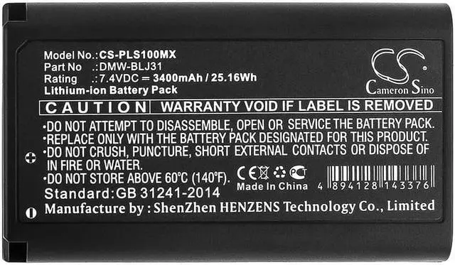 Battery for Panasonic Lumix DC-S1 Lumix DC-S1R Lumix S1 Lumix S1R DMW-BLJ31 Compatible with the following devices Lumix DC-S1, Lumix DC-S1R, Lumix S1, Lumix S1R Compatible with Battery Part Numbers DMW-BLJ31, DMW-BLJ31E