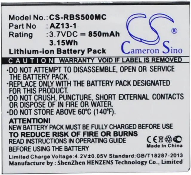 AZ13-1 Capacity: 3.7V 850mAh / 3.15W h