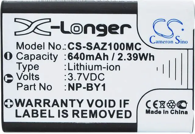 Battery Part Numbers NP-BY1 Capacity: 3.7V 640mAh / 2.39W h