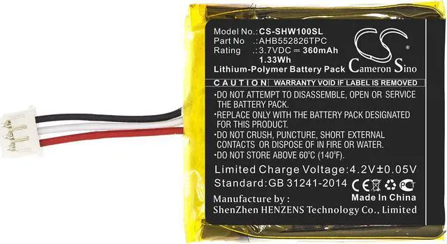 Battery Part Numbers AHB552826TPC Capacity: 3.7V 360mAh / 1.33W h