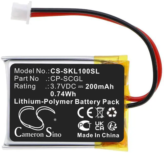 Battery Part Numbers CP-SCGL Capacity: 3.7V 200mAh / 0.74W h