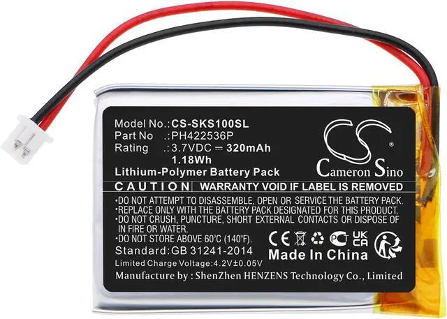 Battery Part Numbers PH422536P Capacity: 3.7V 320mAh / 1.18W h