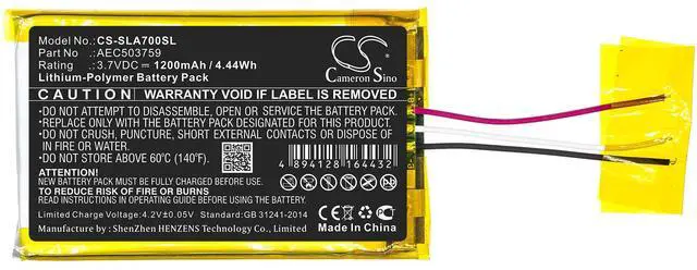 Battery Part Numbers AEC503759 Capacity: 3.7V 1200mAh / 4.44W h