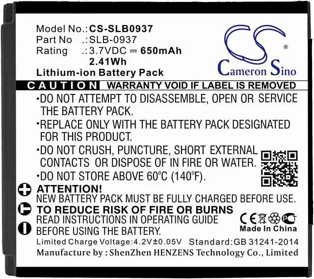 Battery Part Numbers SLB-0937 Capacity: 3.7V 650mAh / 2.41W h
