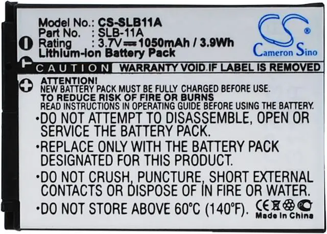 Battery for Samsung EX1 ST1000 ST5000 TL240 TL320 TL350 TL500 WB1000 WB600 WB650 Compatible with the following devices EX1, ST1000, ST5000, TL240, TL320, TL350, TL500, WB1000, WB600, WB650, CL65, CL80, HZ15, HZ15W, HZ25W, HZ30, HZ30W, HZ35W, HZ50, HZ50W, ST1000, ST5000, ST5500, TL240, TL320, TL350, TL500, WB100, WB1000, WB2000, WB5000, WB550, WB5500, WB600, WB650 Compatible with Battery Part Numbers EA-SLB11A, SLB11A, SLB-11A