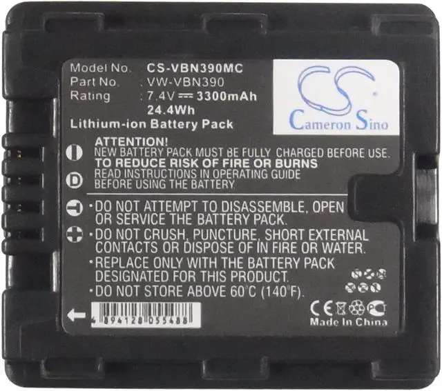 Battery for Panasonic HC-X900 HC-X900M HC-X920 HDC-HS900 HDC-SD800 HDC-SD900 Compatible with the following devices HC-X900, HC-X900M, HC-X920, HDC-HS900, HDC-SD800, HDC-SD900, HDC-TM900 Compatible with Battery Part Numbers VW-VBN390Fully Decoded Capacity: 7.4V 3300mAh / 24.42W h