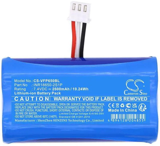 Battery Part Numbers INRIB650-2S1P Capacity: 7.4V 2600mAh / 19.24W h