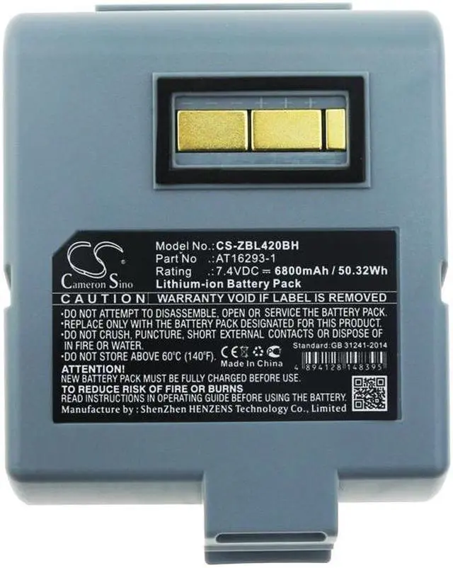 Battery for Zebra QL420 QL420 Plus QL420+ AT16293-1 Portable Printer CS-ZBL420BH Compatible with the following devices QL420, QL420 Plus, QL420+ Compatible with
