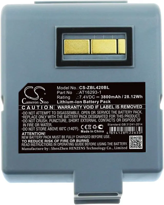 Battery for Zebra QL420 QL420 Plus QL420+ AT16293-1 Portable Printer CS-ZBL420BL Compatible with the following devices QL420, QL420 Plus, QL420+ Compatible with