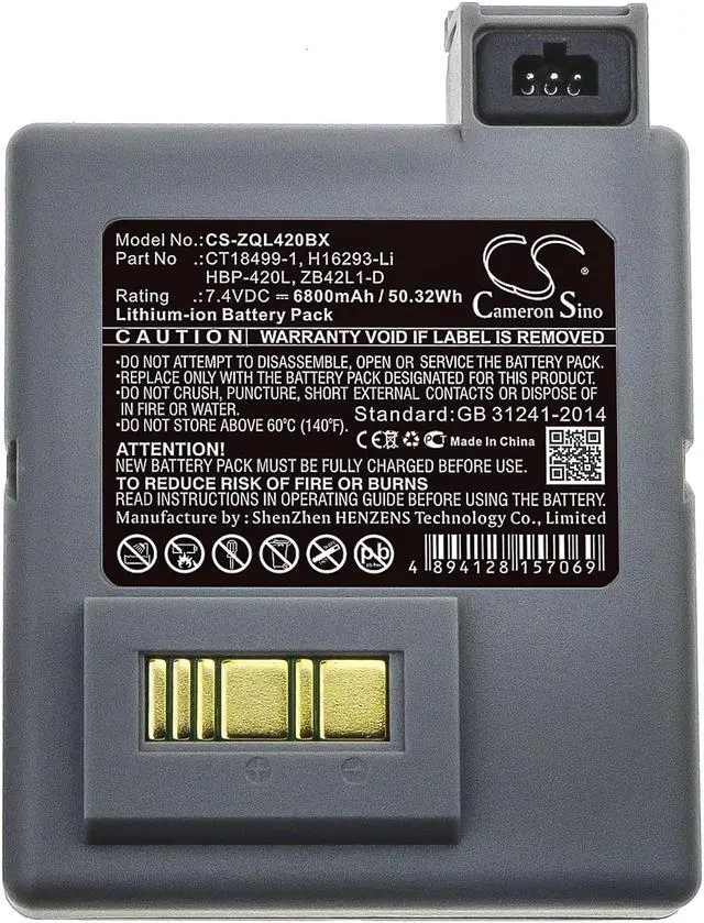 Battery for Zebra P4T RP4 RP4T CT18499-1 H16293-Li HBP-420L ZB42L1-D Portable Compatible with the following devices P4T, RP4, RP4T Compatible with Battery Part Numbers CT18499-1, H16293-Li, HBP-420L, ZB42L1-D