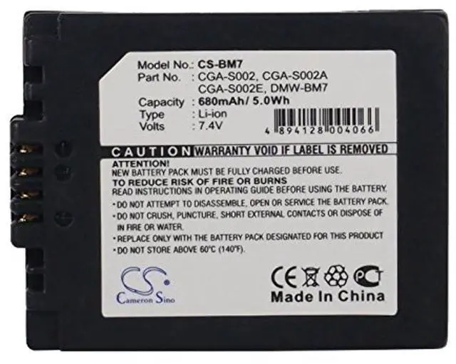 | Part Number | CGA-S002, CGA-S002A, CGA-S002A/1B, CGA-S002E, CGA-S002E/1B, CGR-S002, CGR-S002E, DMW-BM7 |