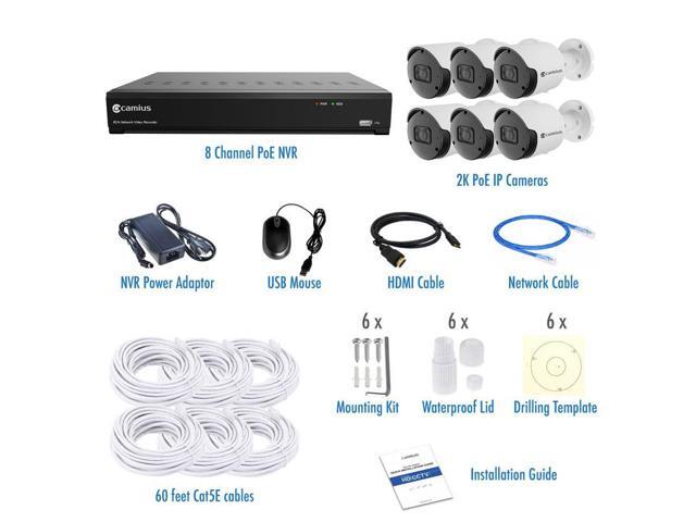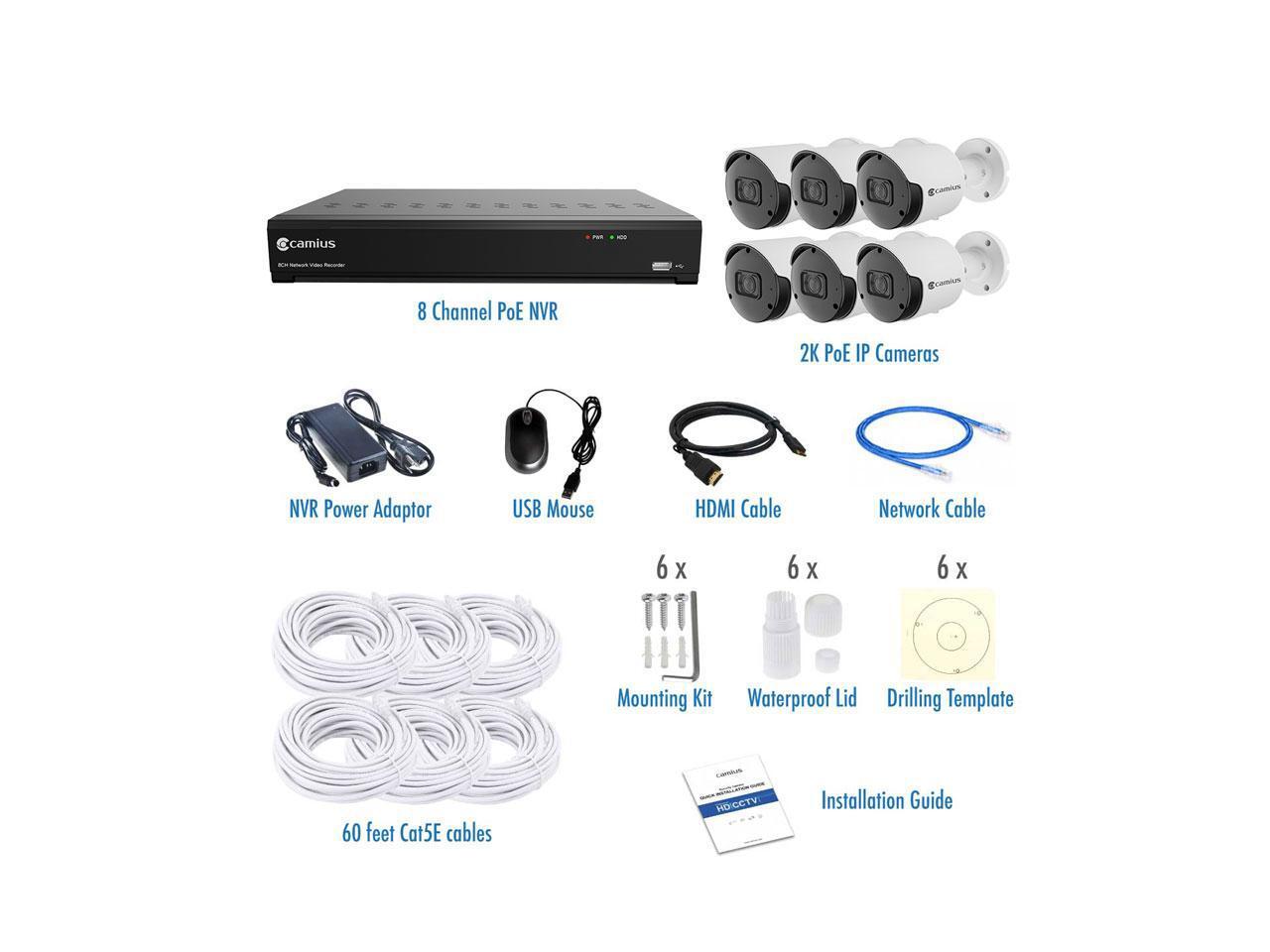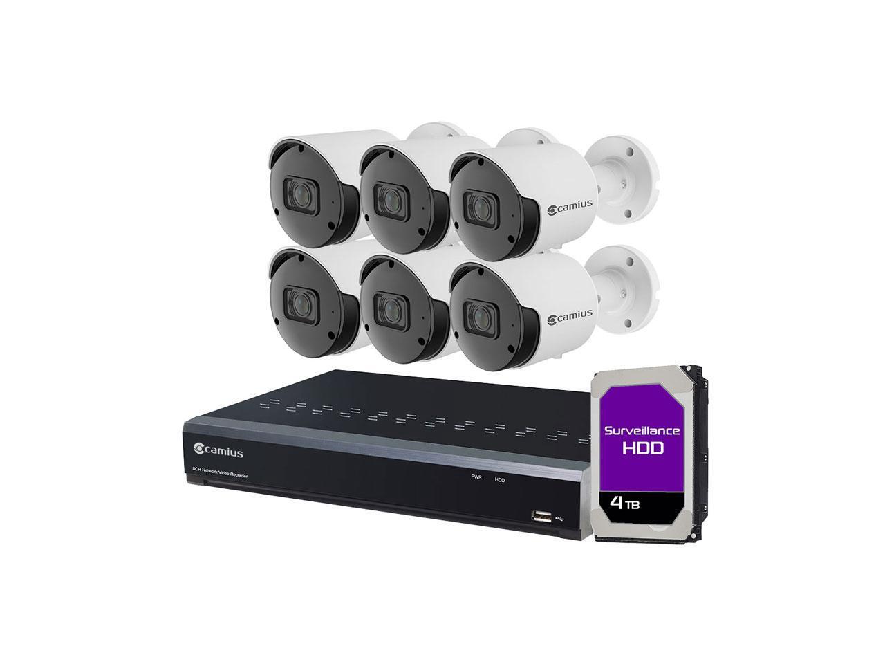 Camius 5MP 2K 6 PoE Outdoor Camera System with 128 Mbps 8 Channel NVR, 3TB HDD, Audio, Night Vision, Smart Motion Detection, PC/Mac Software, Web client, Smartphone app
