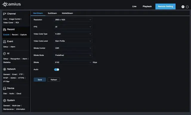 Users can monitor live video and audio streams in addition to playback and manage cameras with access to device settings using web browser, PC, Mac Software and Camius View mobile app.
